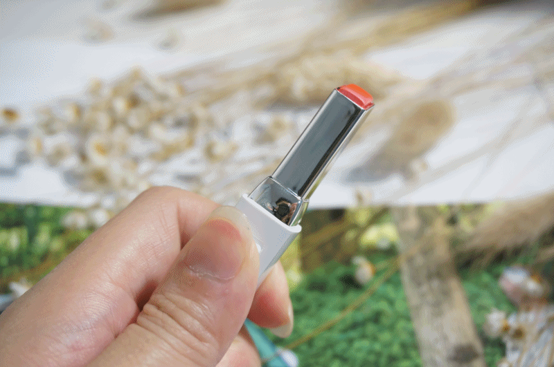 唇膏本身看起來很像大紅。但它其實是橘色喔